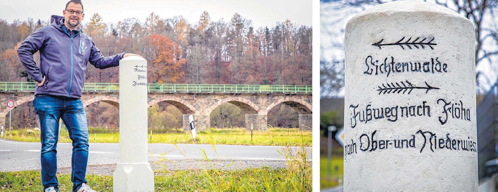 Die runde Wegweisersäule in Braunsdorf wurde restauriert.