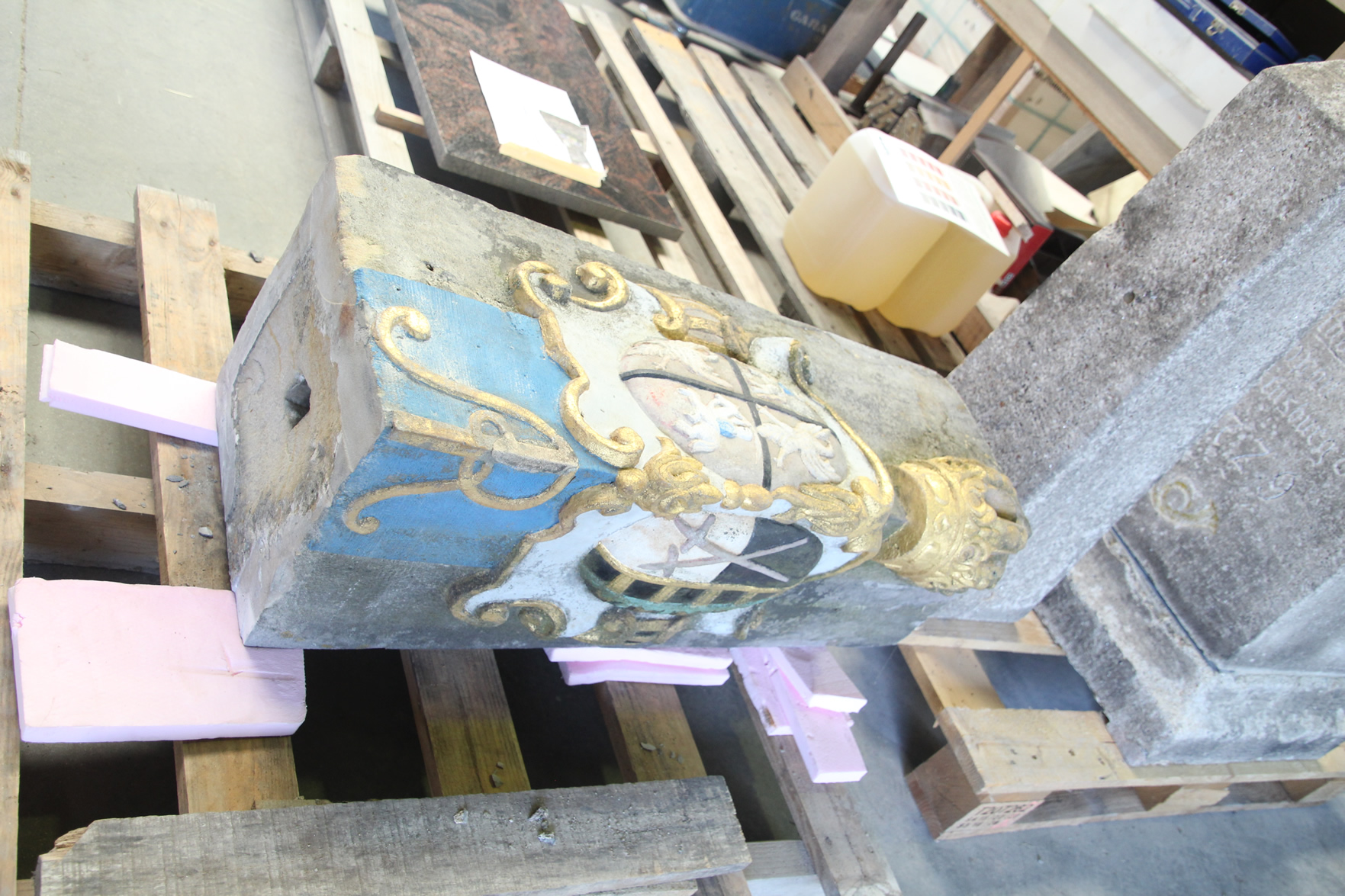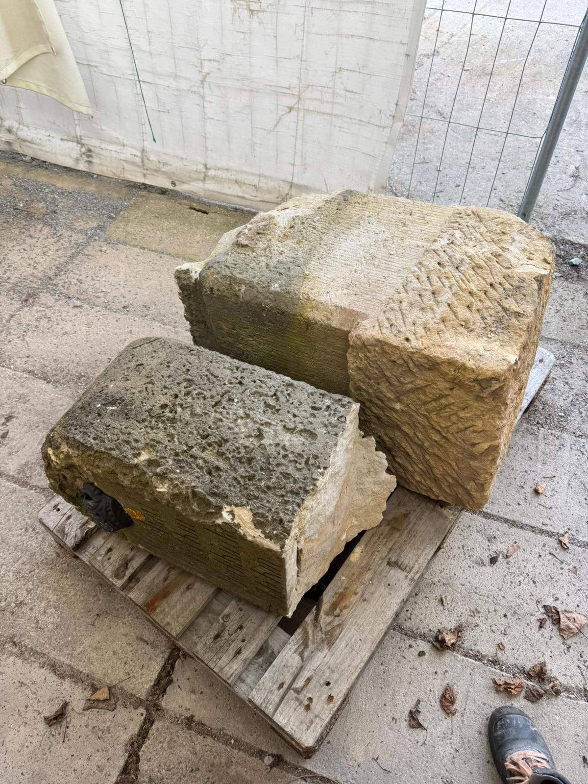 Der in Wurzen geborgene Halbmeilenstein aus Nemt wird im Auftrag des Ortschaftsrates Nemt (Stadt Wurzen) von der Steinbildhauerin Maria Kaiser aus Medingen seit März 2025 restauriert.