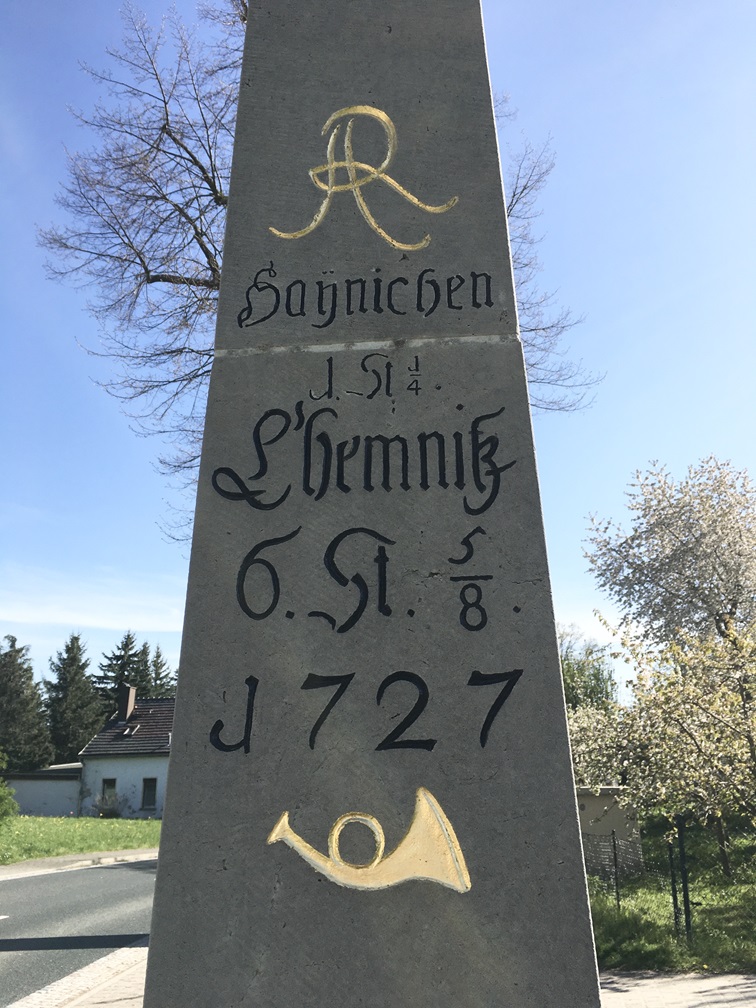 Bei der kursächsischen Ganzmeilensäule Nr.175 wurde von Steinmetz Kampik aus Pappendorf der Inschriftenteil ergänzt. Es steht nun auch Haynichen an der Säule mit der entsprechenden Distanz.