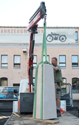 Zusätzlich erhielt der Säulenstandort ein Bodenlicht, um das Verkehrsdenkmal nachts zu illuminieren.