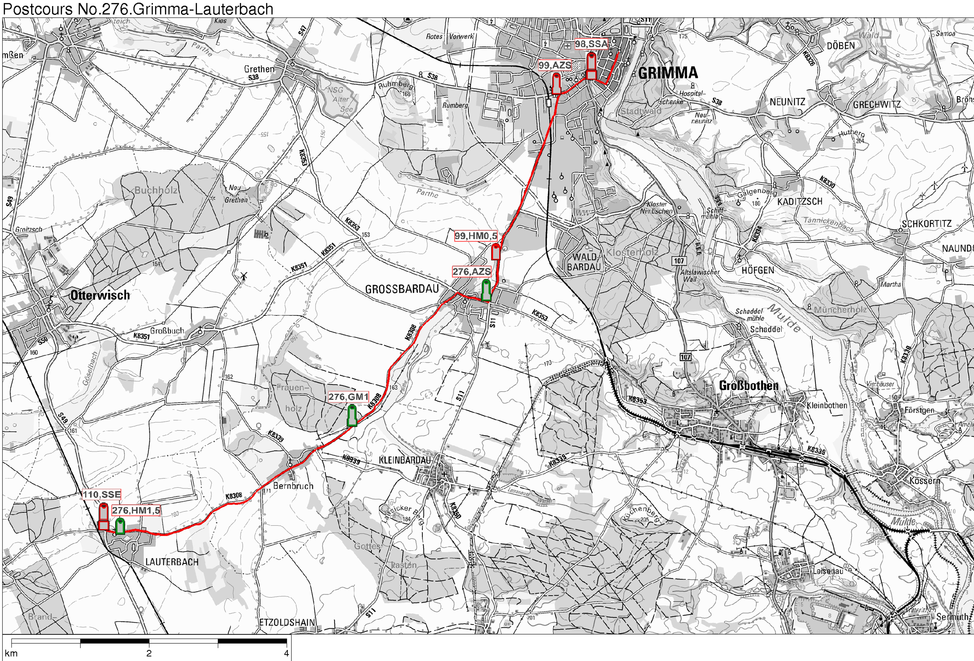 Beim Klick auf die Postkurs-Nummer öffnet sich eine Landkarte mit dem eingezeichneten Postkurs.