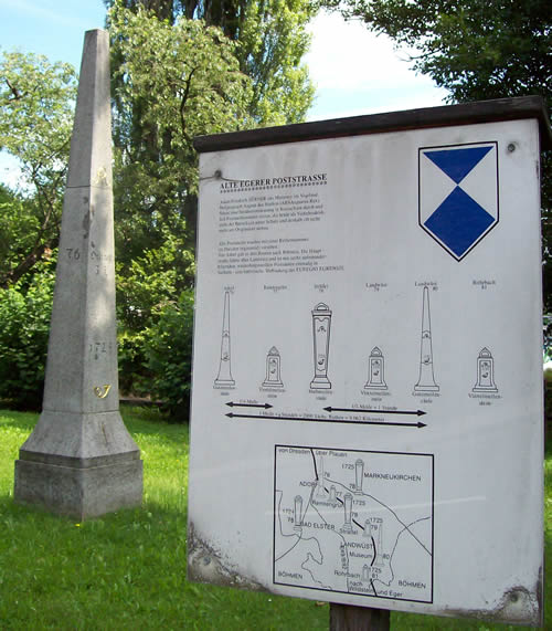 Auf einem niedrigen Fundamentsockel stehend, ähneln sie mit ihrer schlanken obeliskartigen Form etwas den Distanzsäulen. Ihre Höhe beträgt nur etwa 3,75 m und sie besitzen kein Wappenteil.