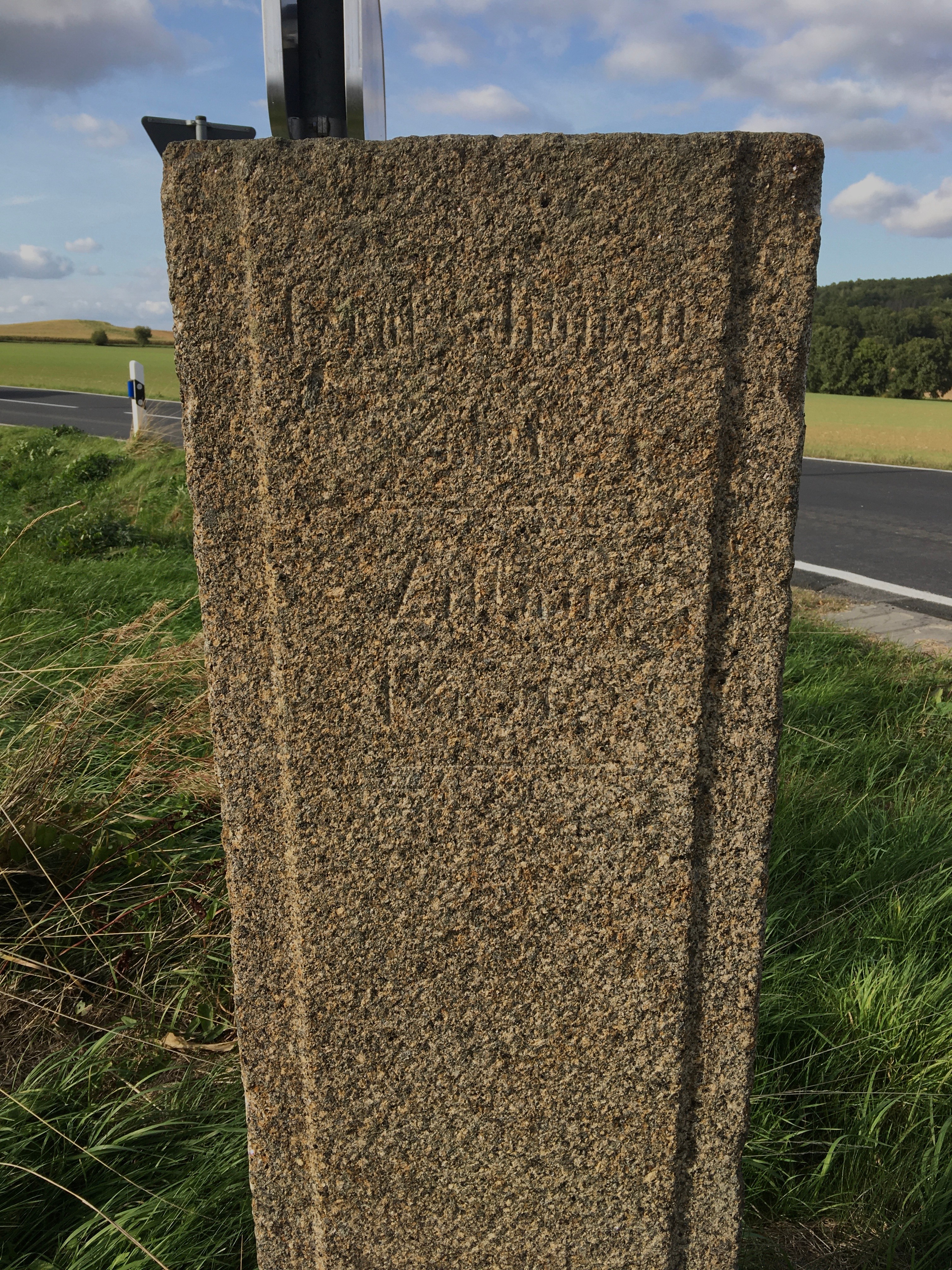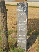 Der kundige und ehrenamtlich tätige Einwohner des Ortes Robert Ringel hat im Mai/ Juni 2023 in seiner Freizeit die Wegesäule neu grundiert und die Inschriften sowie die Pfeile farbig neu ausgelegt.