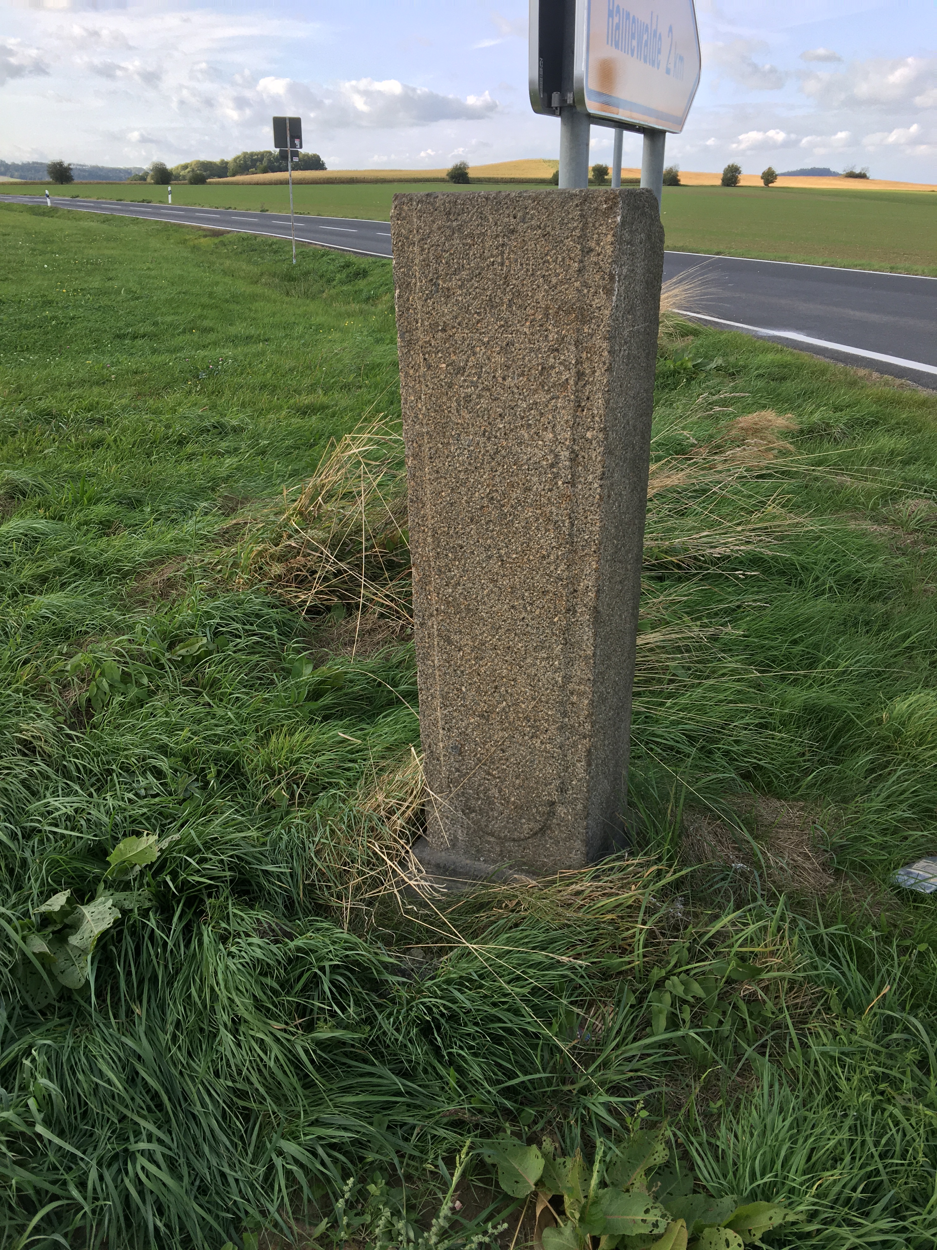 Aktueller Neufund des Reststückes einer kursächsischen Halbmeilensäule