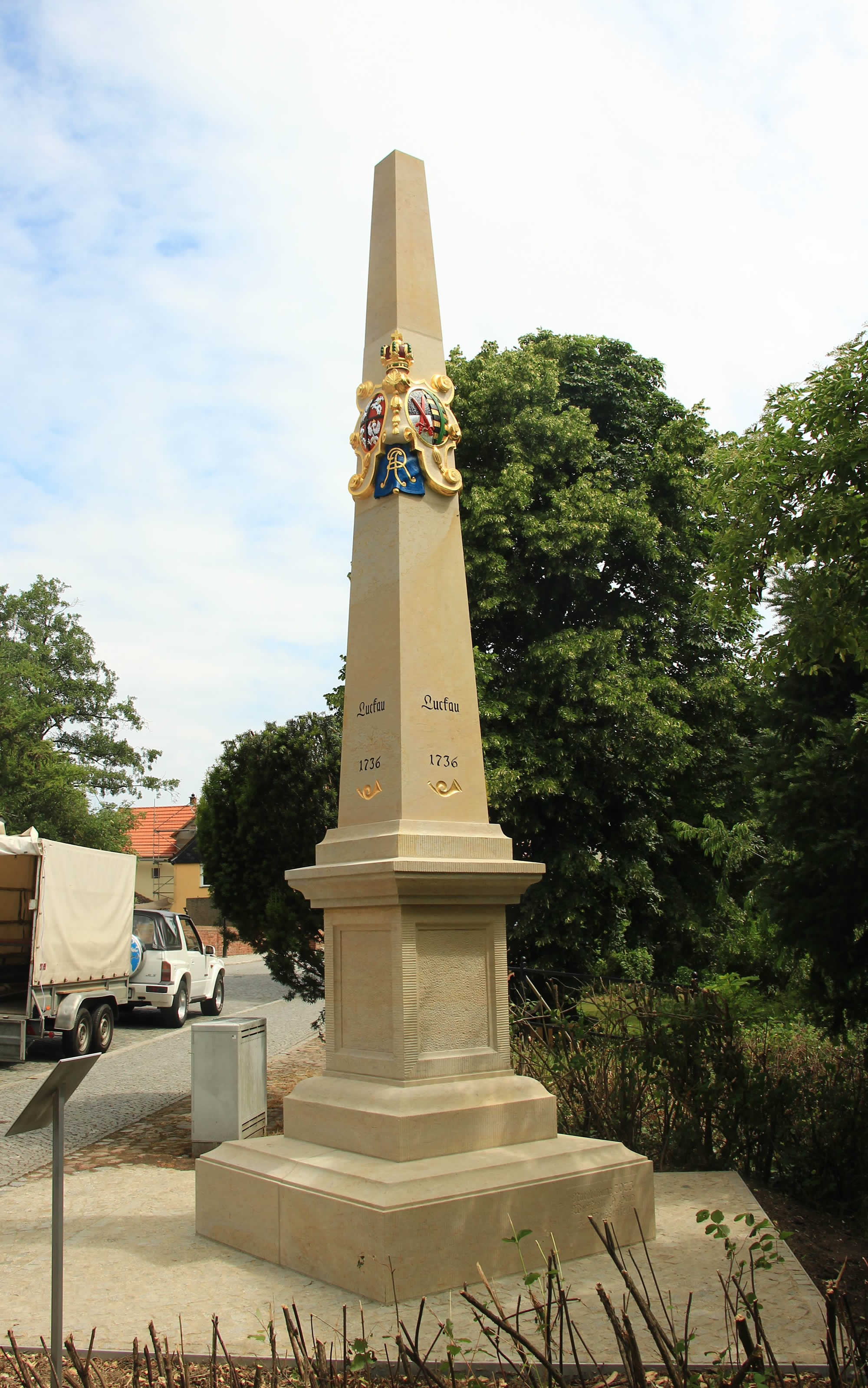 In Luckau/ Brandenburg wird die Nachbildung der ersten Distanzsäule durch Steinrestaurator Hain/ Meißen gefertigt und voraussichtlich am 24. Juni 2023 aufgestellt. Die Wiedererrichtung erfolgt auf dem kürzlich gefundenen Originalfundament. Eine weitere Distanzsäule für die Stadt Luckau ist zeitnah vorgesehen.
